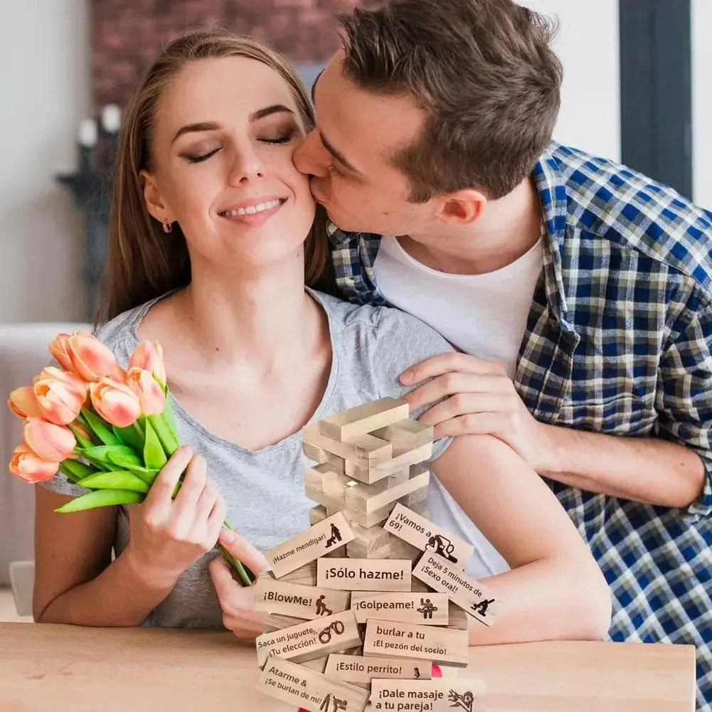 .. Jeux de blocs sexuels pour adultes avec 48 blocs en bois pour couples, blocs empilables amusants pour les idées, données d'anniversaire, dés de nuit pour lui et elle